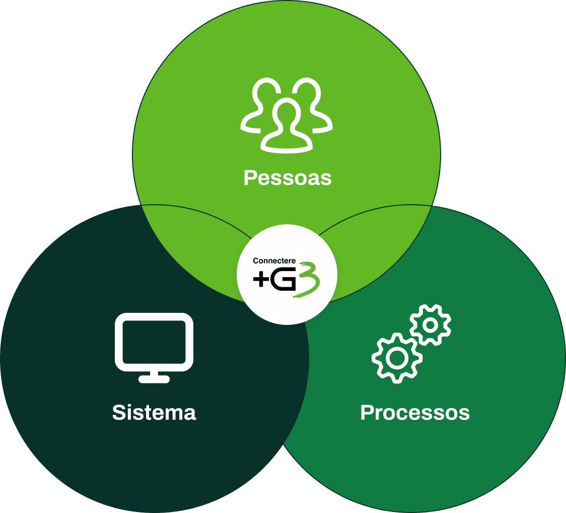 Foco na integração entre pessoas, processos e software, alinhado às melhores práticas de gestão