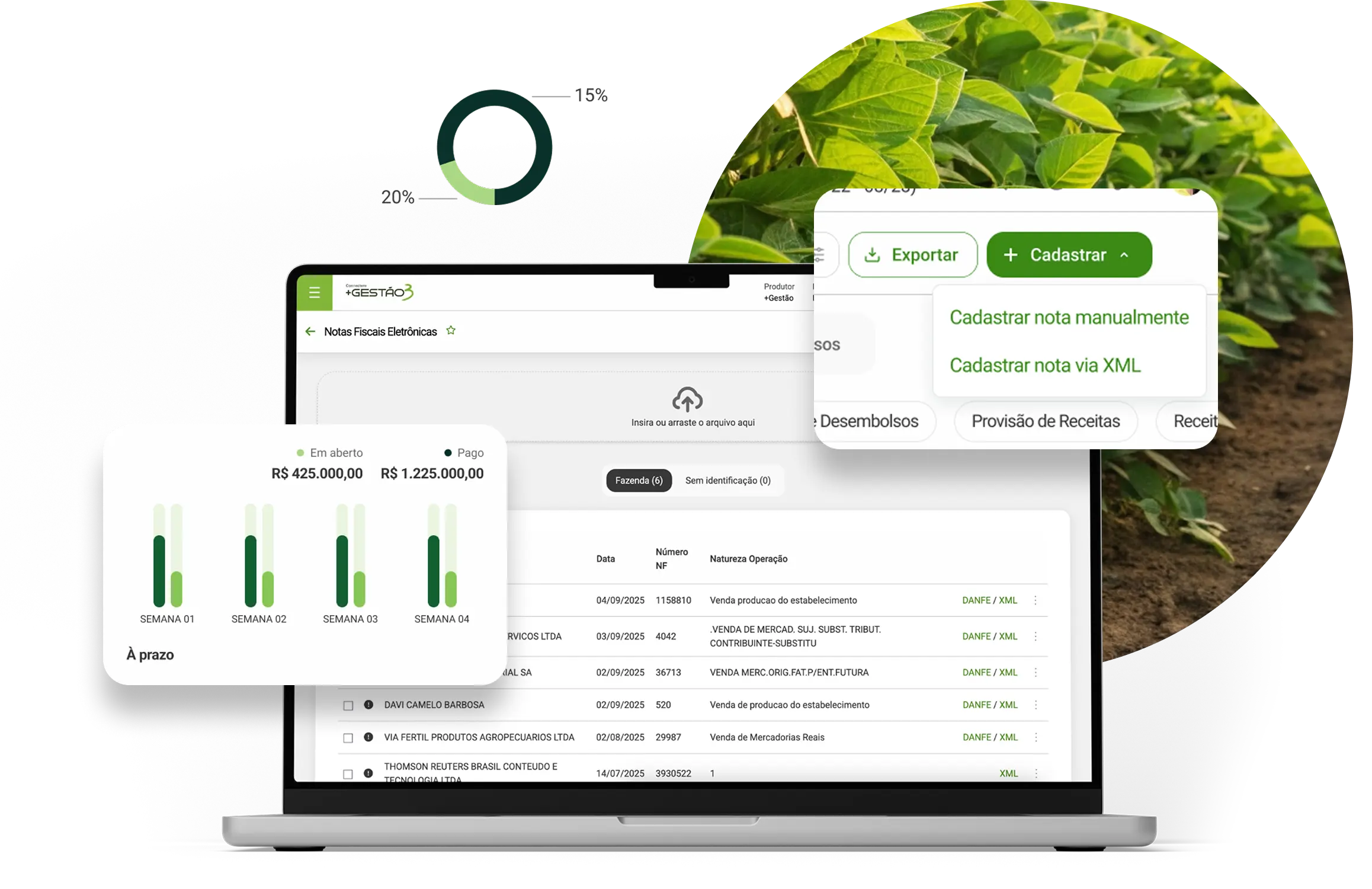 Ao emitir uma Nota Fiscal Produtor Rural no +Gestão, o sistema faz tudo automaticamente: